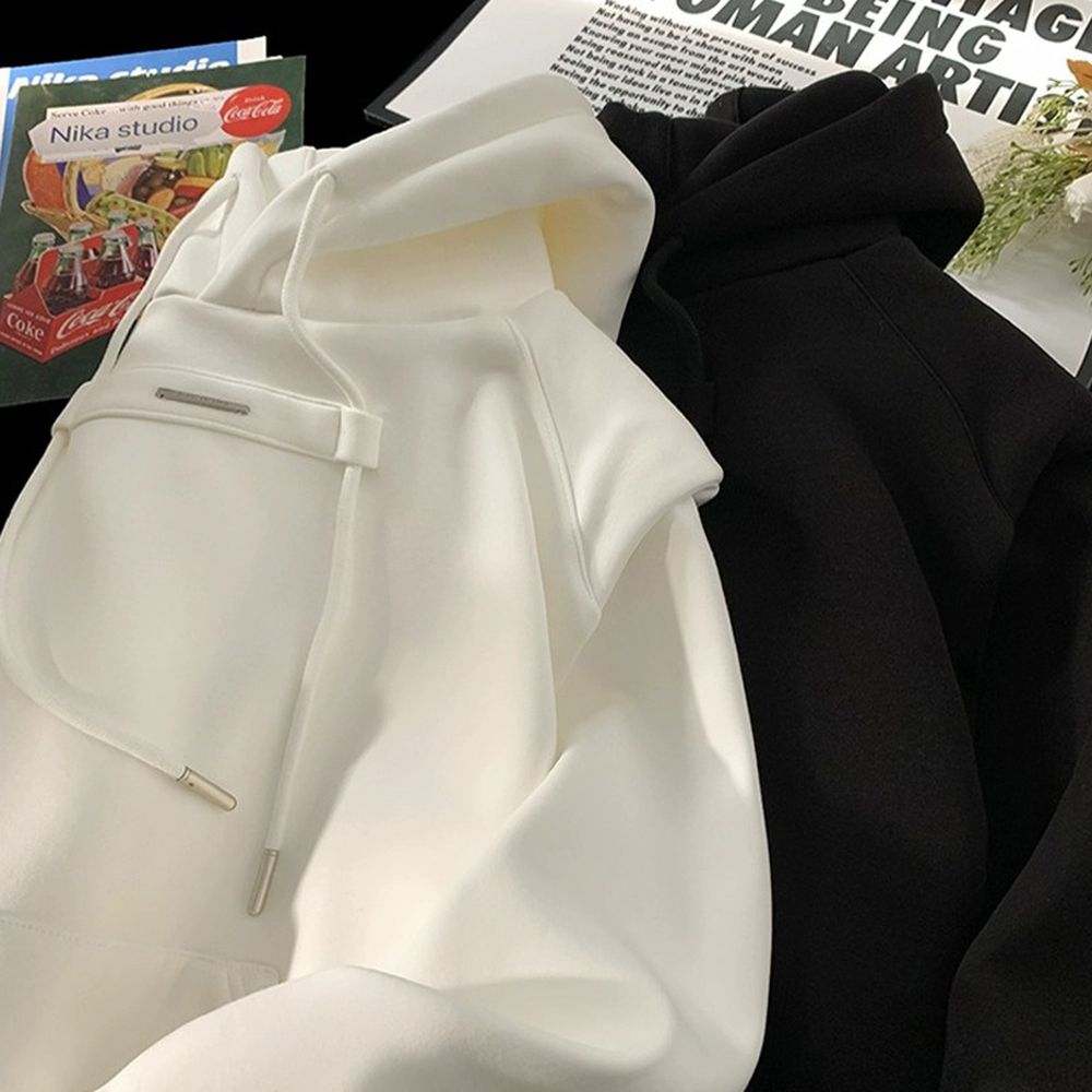 Loose-fitting Long-sleeved Padded Shoulder Hooded Sweatshirt for Men Fashion Outwear