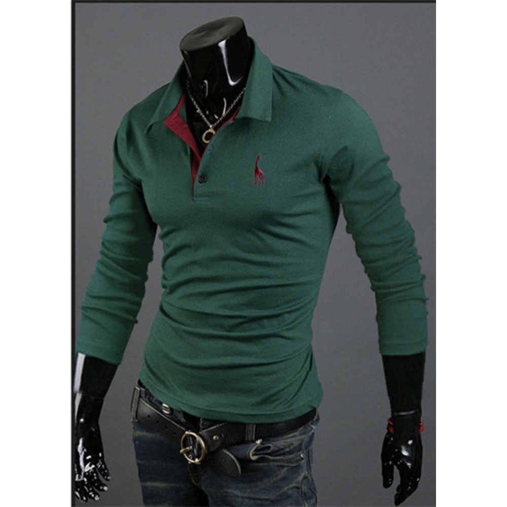 Long-Sleeved Lapel Men's T-Shirt Solid Color Top One-Piece Long-Sleeved