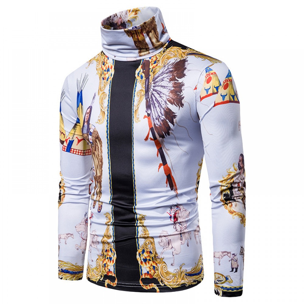 Men's Large Size 3D Printing High Neck Long Sleeve T-Shirt Bottoming Shirt