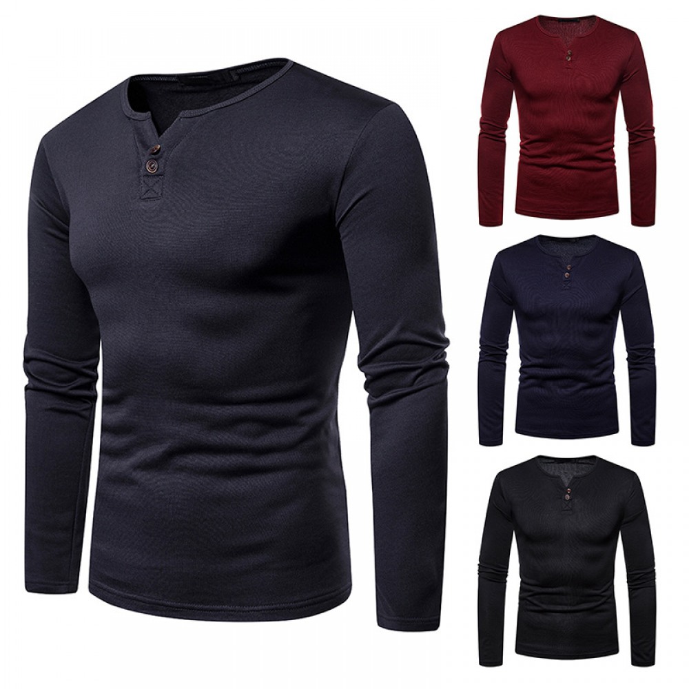 Men's Plus Size Plus Velvet Warm Henley Collar Long-Sleeved T-Shirt Bottoming Shirt