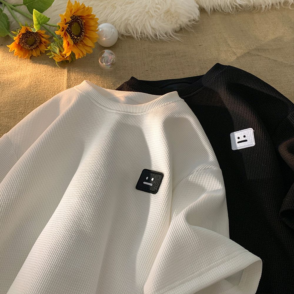 Flat Summer New Men's High Street Hip-Hop Round Neck Fashion Personality Hem Short-Sleeved T-Shirt