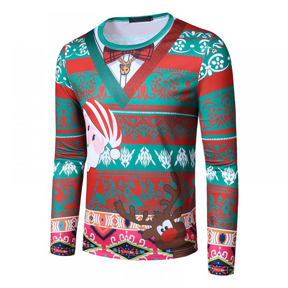 New 3D Personality Printing Fashion Men's Christmas Long-Sleeved T-Shirt