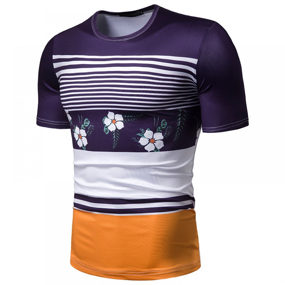 New Summer Men's Short-Sleeved T-Shirt Men's Contrast Striped Slim Casual T-Shirt