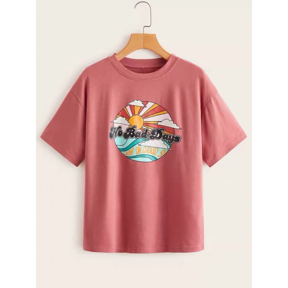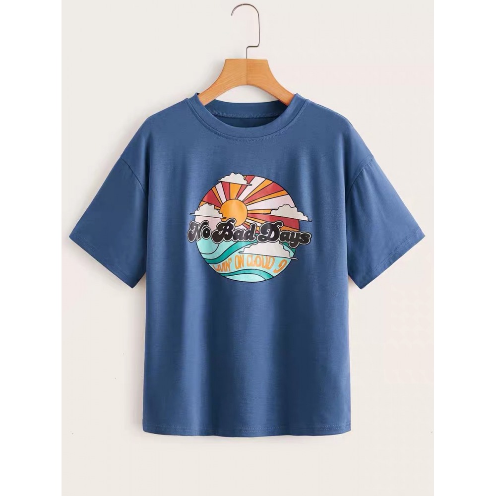 Summer Hot Style Print Simple Round Neck T-Shirt