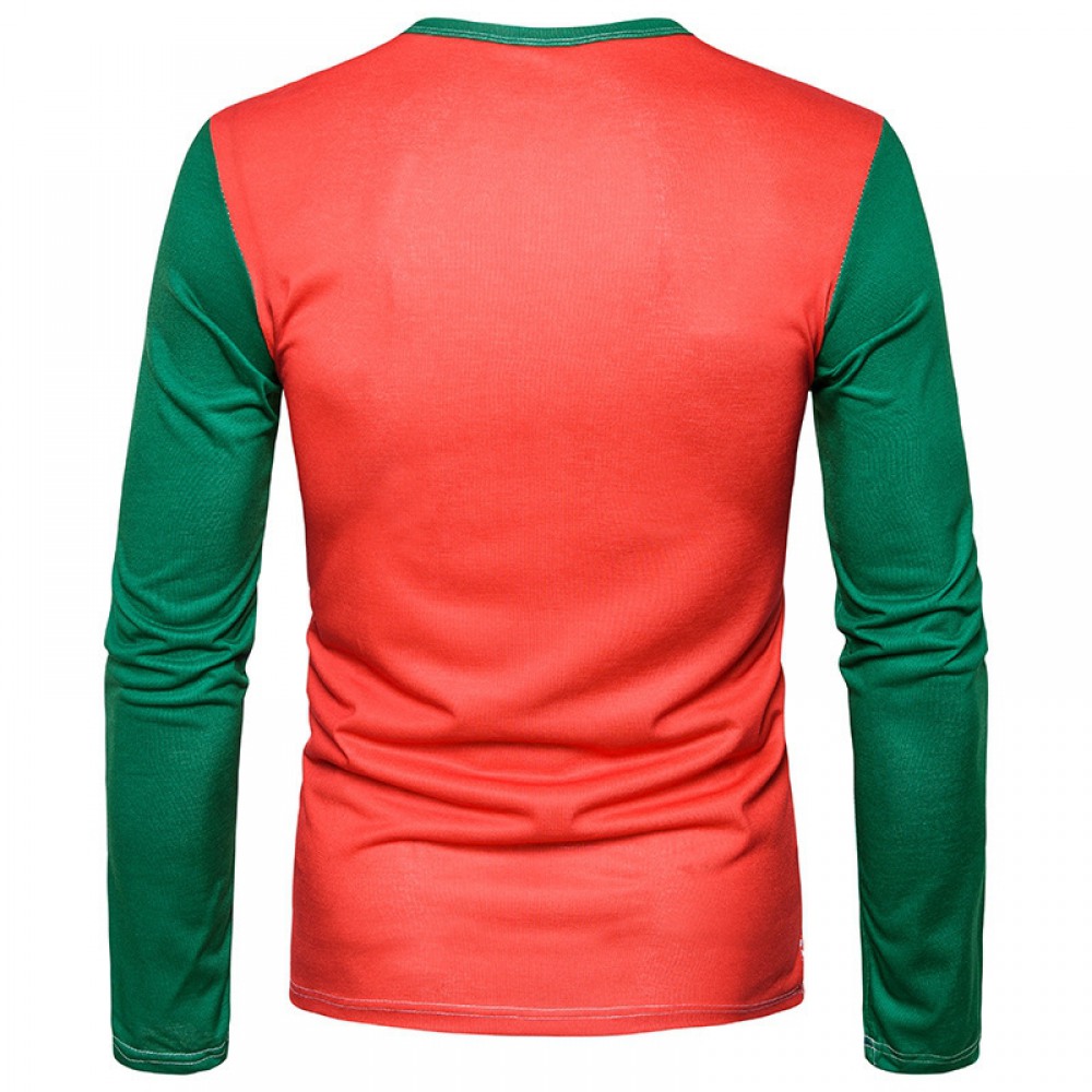 Autumn and Winter New Men's Fashion Santa Claus Hand-Held Color Stick Printing 3D Long-Sleeved T-Shirt