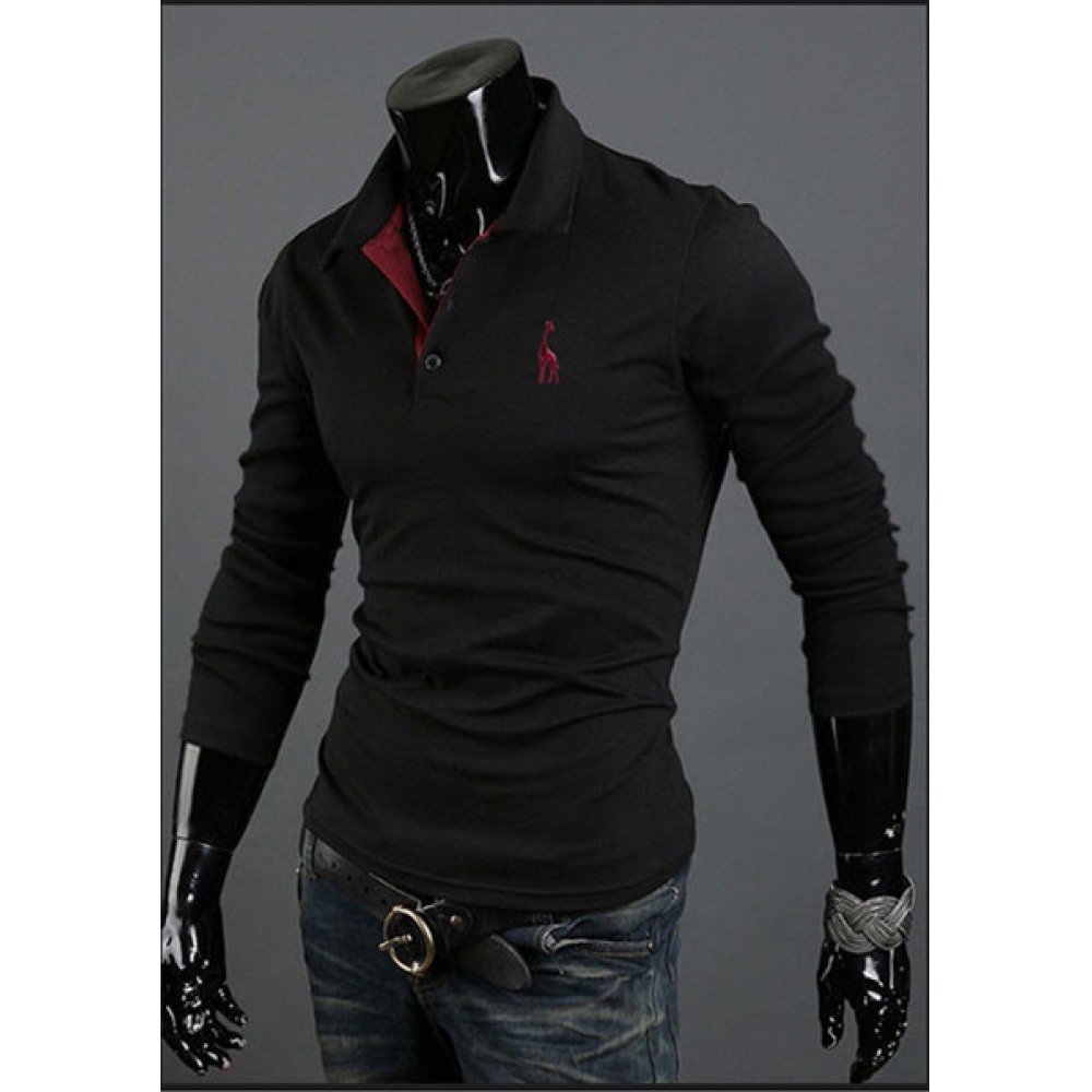 Long-Sleeved Lapel Men's T-Shirt Solid Color Top One-Piece Long-Sleeved