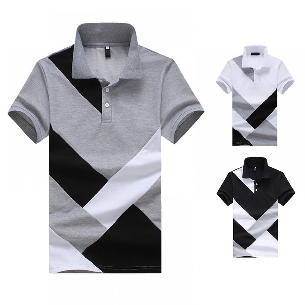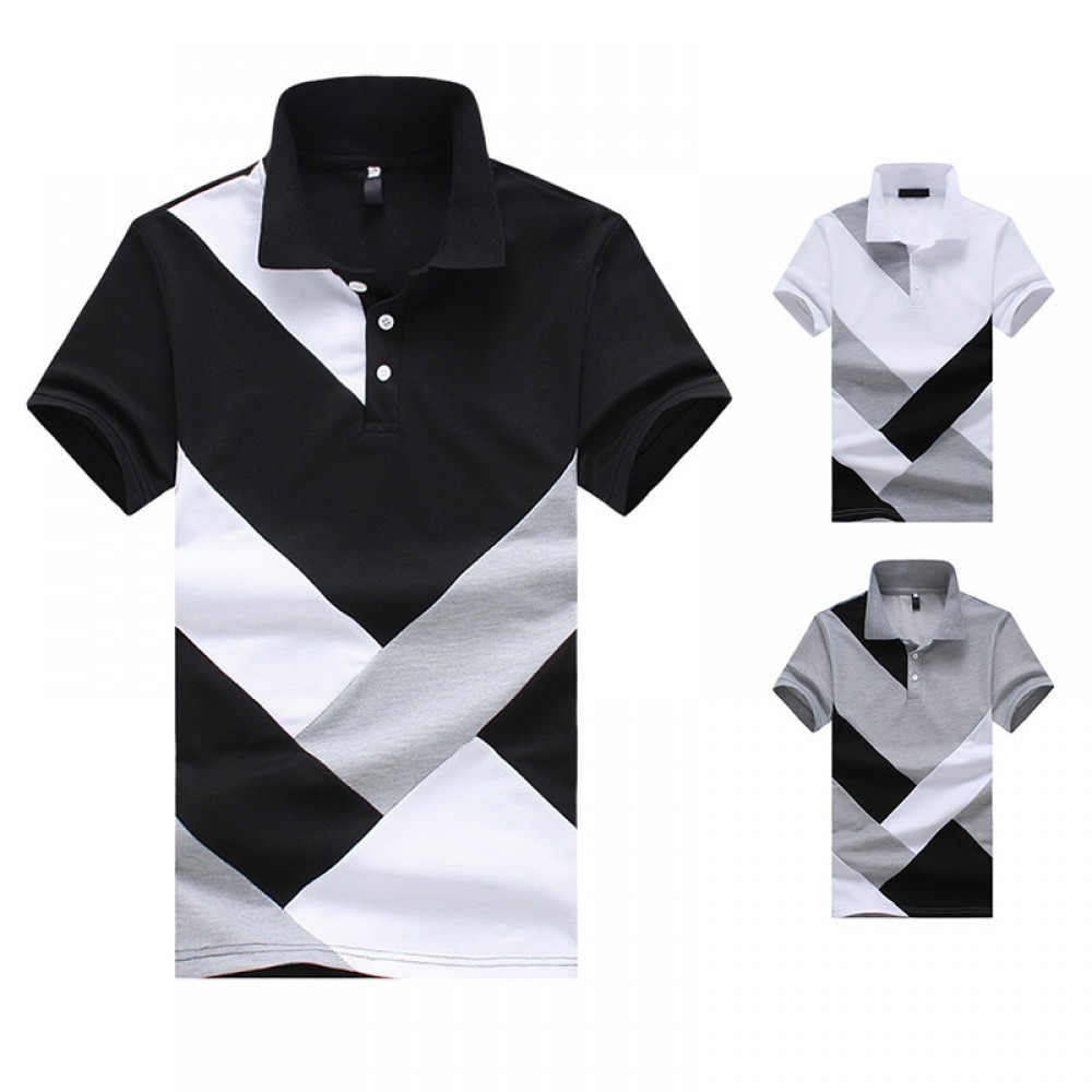 New Summer Men's Short-Sleeved T-Shirt Men's Contrast Striped Slim Casual T-Shirt