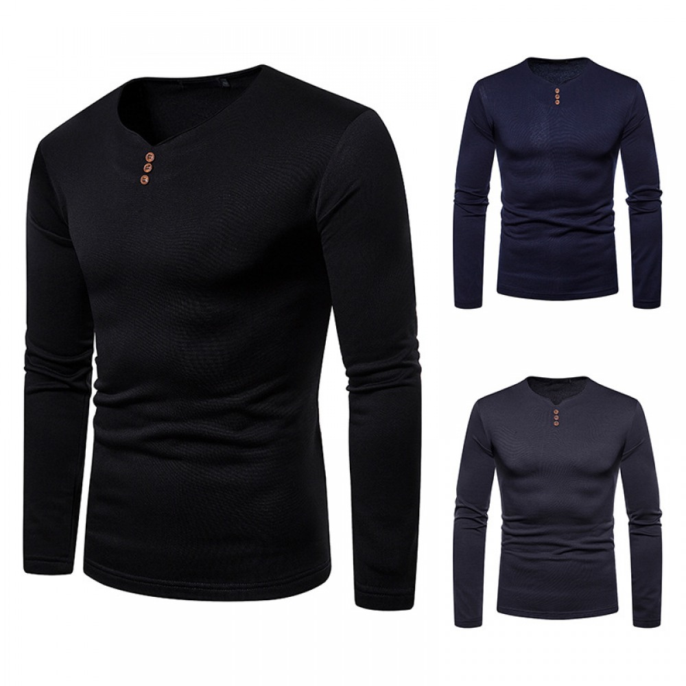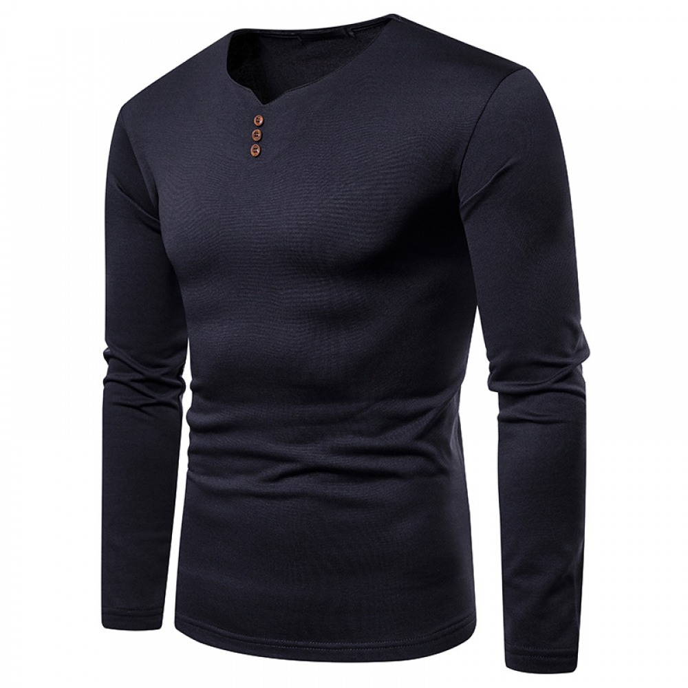 Men's Plus Size Plus Velvet Warm V-Neck Long-Sleeved T-Shirt Base Shirt