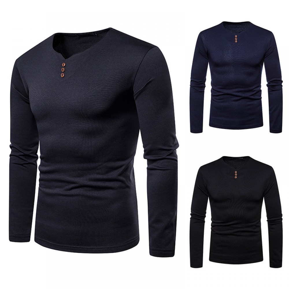 Men's Henry Collar Color Matching Long-Sleeved Plus Size T-Shirt