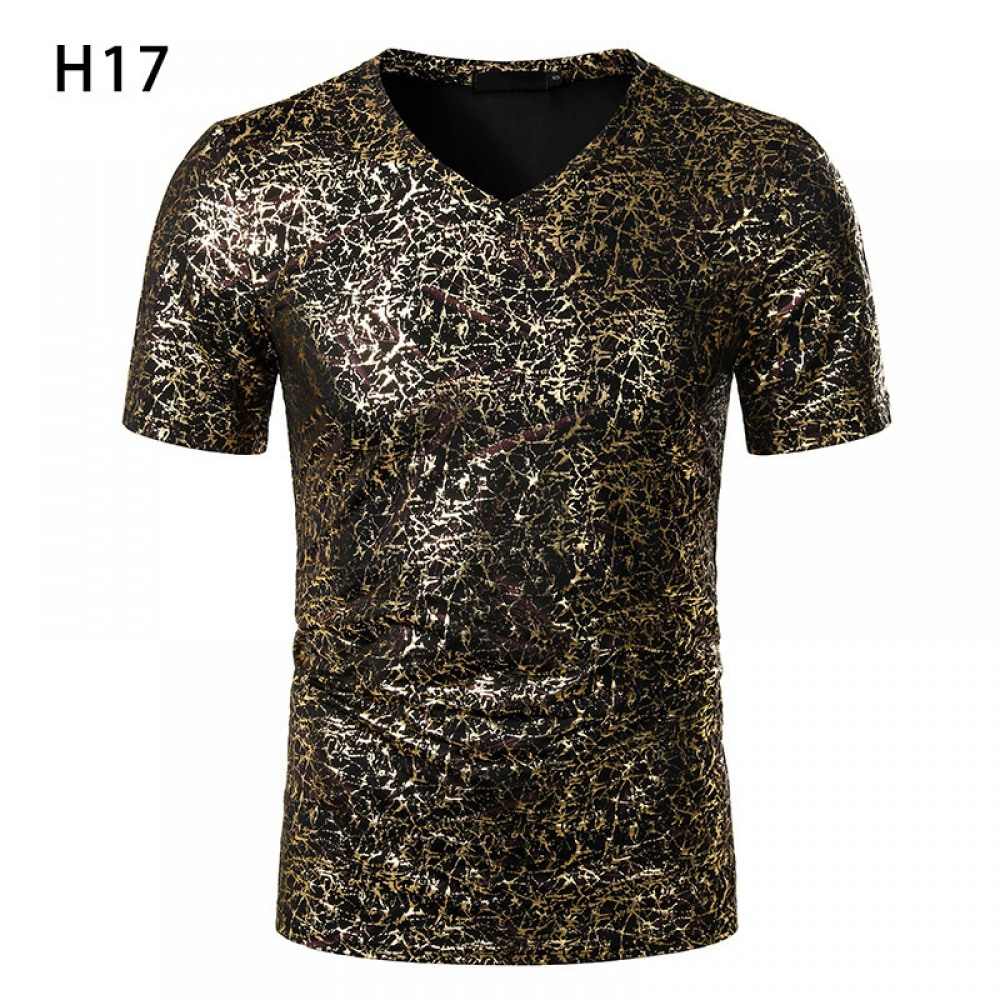 Summer Men's Nightclub Bar Fashion Casual Hot Stamping Printing Short-Sleeved Printed T-Shirt